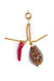 This yellow gold key charm features natural brown cowrie shell and vibrant red coral charms, elegantly accented with delicate chains. Its sophisticated design brings a warm, earthy touch to your keys or bag, blending timeless style with subtle coastal inspiration.