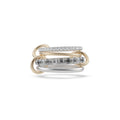 The Arla features four bands crafted from 18k yellow gold and .925 sterling silver, adorned with a blend of gray and white diamonds totaling 1.65 carats. Its three 18k yellow gold connectors enable versatile wear—either spread elegantly across multiple fingers or stacked as a striking sculptural statement. Individually handcrafted in Los Angeles, the Arla harmonizes refined craftsmanship with a sophisticated, contemporary design.