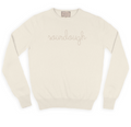 Cream crewneck sweater with "sourdough" hand stitched on the chest in sand colored thread.
