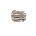 Inspired by the celestial elegance of the Leo constellation, this handcrafted ring features three eternity bands adorned with pavé-set diamonds in cognac, champagne, and white tones. The design combines 18k rose gold, yellow gold, sterling silver, and black rhodium-plated prongs, creating a harmonious blend of multi-tonal metals. With a total carat weight of 3.2, the Leo ring offers customizable options and a modular style perfect for a refined, stacked look. Each piece is meticulously crafted in Los Angeles, embodying sophistication and celestial grace.
