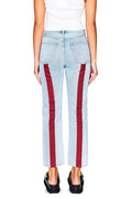 Be part of an exclusive club of OU Red Tate Jean wearers! These classic jeans from Still Here New York feature luxurious stripes of crimson, a look to set you apart from the crowd. Crafted for comfort and style, these jeans will elevate any look.