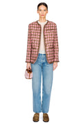 The 90's Pinch Waist jeans feature a marbled, worn-in indigo wash with subtle whiskering, evoking timeless vintage style. Made from rigid, non-stretch regenerative cotton denim, these high-rise, full-length straight jeans provide a structured fit that gradually softens for personalized comfort.
