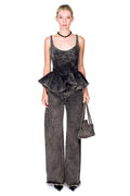 The Classic M'A 5-pocket boyfriend jeans in black acid wash denim offer a relaxed, wide-leg fit with raw hems for a laid-back yet stylish look. Featuring a timeless five-pocket design, these jeans combine comfort and trendiness, making them a versatile addition to any wardrobe.