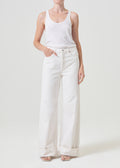 Its high-rise waist accents the figure while the wide leg and untacked cuff exude effortless sophistication. Pair with a sleek tee to achieve an ultra-flattering look.