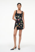 This chic hand-beaded mini dress features a sleek silhouette with a right side leg slit, sleeveless design and square neckline for a timelessly sophisticated look. Elevate any occasion and exude timeless elegance with this eye-catching statement piece.
