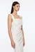 The Raf Dress in Bone by Paris Georgia features a soft structure, contrast bust panel, and side split. It fits close to the body and true to size, combining elegant design with modern details.