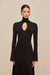 The Santo Dress combines timeless elegance with modern design details. This sophisticated midi features a classic turtleneck and long sleeves for refined coverage, while a tasteful keyhole cutout at the chest adds an unexpected touch of allure. The gracefully flared skirt creates a flattering silhouette that moves beautifully with every step. Perfect for elevated everyday wear or special occasions where understated luxury speaks volumes.