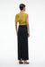 The Topaz Dress combines elegant textures with a sophisticated silhouette. Its draped asymmetrical organza bodice creates a delicate, airy effect, contrasting beautifully with the sleek, form-fitting column ponte skirt. This mixed-material maxi dress offers timeless style and refined comfort for any special occasion.