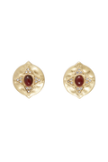 These elegant stud earrings combine the timeless appeal of sterling silver with a luxurious 14K yellow gold plate finish. Each piece features a vibrant red jasper stone, prized for its rich, warm tones and natural beauty. The sophisticated design makes them versatile enough for everyday wear while refined enough for special occasions. A perfect balance of understated elegance and distinctive character.