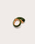 The Karina Ring combines marbled green resin with brushed brass in a sleek, curved silhouette that elegantly wraps around the finger. Its unique blend of materials offers a refined, sculptural look, perfect for adding a touch of sophisticated artistry to any ensemble.