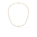 The Gravity YG Pave Arc Necklace features an 18k yellow gold Gravity Chain paired with a sleek central bar adorned with three movable annulets, offering a refined tactile element. Set with 0.1 carats of white diamonds, this piece combines elegant sparkle with versatile design. Its adjustable length and secure safety circle clasp ensure both comfort and style. Meticulously handcrafted in Los Angeles, this necklace embodies sophisticated craftsmanship and timeless appeal.