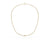 Ghost image of a yellow gold chain necklace that features a yellow gold arced bar with three yellow gold annulets, one pave with diamonds.