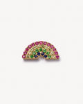 Celebrate the spectrum of your emotions with this exquisite rainbow charm, a luminous symbol of resilience and beauty. Featuring genuine pink sapphire, yellow sapphire, blue sapphire, and tsavorite set in 18K gold, each gemstone represents a different facet of your journey. Like a rainbow after the storm, this delicate piece reminds you that light always returns. Perfect for layering or as a standalone statement, it's a wearable affirmation that every color of who you are deserves to shine.