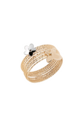 Introducing the Serenity Stacked Titanium Wire Ring, a striking blend of ethical craftsmanship and luxurious design. Expertly crafted with sustainable practices, this unique piece features a delicate 18k gold wire adorned with a mix of metal flowers and butterflies.