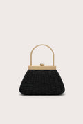 The Estelle Handbag blends vintage charm with modern elegance. Crafted from natural woven straw, it features a structured mini silhouette with a striking gold-toned top handle and hardware. Its secure top closure ensures your essentials stay safe while adding a refined touch to any outfit.