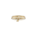 The Leora YG ring showcases dual 18k yellow gold bands, elegantly combining a channel-set band of white diamond baguettes with a solid gold band. Finished with two matching yellow gold connectors, each piece is meticulously handmade in Los Angeles, offering a refined touch of sophistication and timeless craftsmanship.