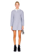 The Long Sleeve Polo Dress features a flared silhouette with a relaxed dropped shoulder and a contrasting collar for subtle contrast. Designed with a concealed button placket showcasing a visible top button, it includes front and back darts for a tailored fit. Finished with tonal logo embroidery at the center back, this dress offers a sophisticated blend of classic style and modern detailing.