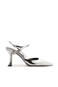 The Tita Wrap Heel blends sophistication with delicate charm, featuring a crisscross bow detail that enhances its graceful silhouette. Crafted in specchio leather with a striking mirrored finish, this pump adds a refined sparkle to both special occasions and everyday ensembles. Its elegant design makes it the perfect choice for those seeking timeless glamour with a modern touch.