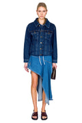 Reimagine classic denim with this Loop Hem Doubled Jacket, where tailored utility meets contemporary design. A contrast collar and deconstructed proportions subvert the traditional trucker silhouette, creating a piece that balances structure with modern ease. Perfect for layering or wearing as a statement piece, this jacket delivers both versatility and refined edge.