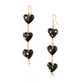 These elegant earrings feature six hand-carved 3D ebony hearts accented with six Si1 1.8mm diamonds placed between each heart, complemented by eleven Si1 1.75mm diamonds and delicate gold balls. Measuring 3" by 0.5", they combine the natural beauty of ebony with the sparkle of VS+ man-made diamonds and white sapphires set in 14K gold for a refined, sophisticated look.