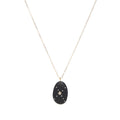 This exquisite One of a Kind Criss Cross Necklace features a striking oval-shaped black stone weighing 0.385 carats, complemented by a sparkling arrangement of one 0.25-carat large round diamond and nine smaller round diamonds totaling 0.135 carats. Elegantly suspended on a 30-inch 18k yellow gold chain. Carefully crafted in New York and ethically collected from beaches around the world.