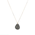 Elevate your style with the One of A Kind Kea Necklace, featuring a striking triangular black and white stone set with a 0.25ct large round diamond and three smaller 0.045ct round diamonds, totaling .295cts. Suspended from a 30-inch 18k yellow gold chain, this unique piece blends elegant design with refined craftsmanship, perfect for adding a sophisticated touch to any ensemble.  Carefully crafted in New York and ethically collected from beaches around the world.