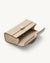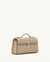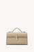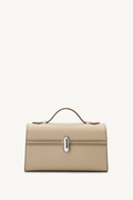The Symmetry Pochette in Grained Calf Leather with Hand Stitch features clean lines, a signature turnlock, one interior pocket, and a leather handle, all enhanced by subtle hand-stitched details for a simple, elegant look.