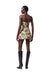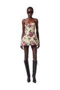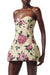 Elegant short dress featuring a romantic beige floral print. The corset-style bodice with sweetheart neckline creates a flattering, fitted silhouette, while the sleeveless cut offers a refined, versatile look perfect for special occasions or elevated everyday wear. A timeless piece that combines classic tailoring with feminine details.