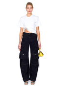 Elevate your everyday essentials with this refined crewneck t-shirt, featuring an intricate crystal rope knot detail that adds understated luxury to a timeless silhouette. The delicate embellishment catches light beautifully, making it perfect for layering or wearing solo. For an intentionally relaxed fit, we recommend sizing up. A versatile piece that effortlessly transitions from casual to polished occasions.