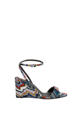 The Julie Wedge sandals are a refined summer essential, blending effortless elegance with comfort. Crafted in Missoni’s signature raschel-patterned fabric, these wedges feature a classic heel and adjustable ankle straps for a secure, comfortable fit—perfect for a stylish, sun-filled day.