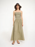 The Marc dress is an essential warm-weather piece that effortlessly transitions from season to season. Crafted from organic cotton, this maxi dress features a fitted upper that gracefully flows into a voluminous bottom, creating a flattering silhouette. The elastic upper ensures comfortable all-day wear, while the generous skirt offers movement and style. Layer it under jackets and sweaters for cooler months, or wear it solo when temperatures climb. A versatile foundation for any refined wardrobe.