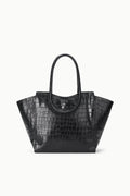 The Maude Tote combines refined functionality with elegant design. This open-top tote features signature rounded straps that distribute weight gracefully, while gusset closure ties and a center dog-clip closure ensure your essentials stay secure. An interior zip pocket adds practical organization. Perfect for the discerning traveler or everyday sophisticate who refuses to compromise on style or security.