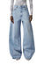 Classic denim trousers designed for effortless style. Features a low waistband with belt loops for a relaxed silhouette, paired with a front closure accented by a logo button. The wide baggy leg creates a contemporary, oversized look that works with everything from casual tees to dressed-up pieces. Perfect for those who prioritize comfort without compromising on fashion-forward appeal.