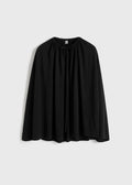 This TOTEME Garderob cape embodies understated elegance with its dual-purpose design. Crafted from luxuriously fluid jersey blending fine wool and silk, it transitions seamlessly from a casual layering piece to a refined component of a coordinated ensemble. The delicate drawstring neckline offers effortless adjustability, while the cape's graceful drape adds an element of refined playfulness to any wardrobe. Perfect for those who appreciate versatile pieces that balance comfort with sophisticated style.