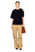 These wide-leg tan Crystal Slit Cargo Pants combine comfort and style with their relaxed fit and large side pockets for practical storage. The subtle slit detail adds a modern touch, making them a versatile choice for a polished yet effortless look.