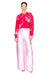 These oversized pink mikado boyfriend trousers combine comfort with style. Featuring classic pockets and a secure zipper and button closure, they offer a relaxed yet polished look perfect for an effortlessly cool outfit.