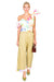 The Tailored Relax Trousers combine comfort and style with their khaki utility fabric and elegant pleating at the hips. Featuring a cropped wide leg and a distinctive contrast white hem adorned with a colorful fruit print, these trousers add a subtle yet playful touch to any outfit. Perfect for a refined yet relaxed look when paired with the Loop-dy Loo Top.