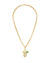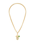A gold-tone chain necklace that features a star-set sapphire pendant with an emerald charm.