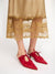 The Masey Mule by Malene Birger is crafted from smooth goat leather for refined comfort. Featuring a pointed silhouette and kitten heels, it is elegantly detailed with a draped cut-out and a slim bow. Ideal for pairing with trousers at the office or a dress for an evening out.