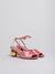 This open-toe satin sandal features a pleated design and a delicate ankle strap with an adjustable gold buckle for a perfect fit. The standout spherical heel is finished with gold plating, adding a touch of elegance. Completed with a leather sole, this sandal combines refined style with comfort.