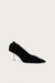 The Valentina Pump epitomizes timeless elegance with its luxurious black velvet upper and refined gold-toned stiletto heel. The pointed toe creates a gracefully elongated silhouette, while the elasticated back strap ensures a secure, comfortable fit throughout the day. A sophisticated choice for elevating any ensemble, from evening wear to polished professional occasions.