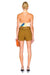 The Como Short is made from soft cotton gabardine, a fine Italian fabric from Tuscany, in a warm saddle brown shade. This modern mini features a flared silhouette with crisp front pleats, convenient side slip pockets, back welt pockets, and a matching wide belt with a covered buckle for a polished look. Pair with a striped button-down or fitted knit for easy polish.