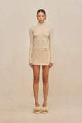 Elevate your wardrobe with the Cornelia Skirt, crafted from luxurious wool for warmth and texture. Its mini length offers a chic silhouette, while the unique abstract faux stone button closure adds an artistic edge. This refined design pairs effortlessly with both casual and dressier looks, making it a timeless addition to your collection.