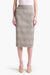 The Hank Skirt offers a refined, tailored look with its close-fitting midi silhouette crafted from a soft virgin wool blend in a classic brown plaid. Perfect for the office or smart occasions, it pairs effortlessly with a crisp white shirt and heels for a polished, sophisticated outfit.