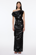 The Remmy Skirt in Black is crafted from signature Liquid fabrication, featuring soft tucks and draping for a fluid, sculptural silhouette. A generous side slit ensures ease of movement, while the softly structured design provides an elegant foundation for elevated styling. Fits true to size and pairs perfectly with the coordinating Liquid Top.