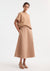 This high-waisted A-line skirt is crafted from organic cotton in a soft, light sand tone. Its minimalist design offers a voluminous yet effortless silhouette, making it a conscious and elegant addition to your wardrobe.