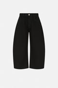 Make a bold statement with these exaggerated wide-leg barrel pants in jet black denim. The dramatic silhouette commands attention while the rich, deep black fabric offers timeless versatility. Perfect for those who embrace fashion-forward styling, these pants transition effortlessly from elevated casual to refined evening wear. The generous leg opening creates an undeniably chic proportion that flatters and impresses.