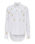 The Lucas Shirt features white poplin fabric with an amber-colored jewel motif embroidery. Its clean design adds a refined and sophisticated touch, suitable for both formal and casual wear.