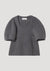 Crafted from a luxurious wool-cashmere blend, this sculptural top showcases a dramatic deep scooped neckline and voluminous balloon sleeves ending at the elbow. A structured peplum gently flares from the waist, sculpting a feminine, architectural silhouette that combines elegance with refined design.