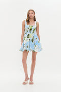 The Suzette Mini Dress features a soft square neckline and structured boning throughout the bodice for a flattering silhouette. Its angled panel seams with twin needle topstitching add refined detail, while the gathered skirt seam flows into a playful mini bubble hem. An external back zip with a sculptural zipper completes this elegant, modern design perfect for sophisticated occasions.